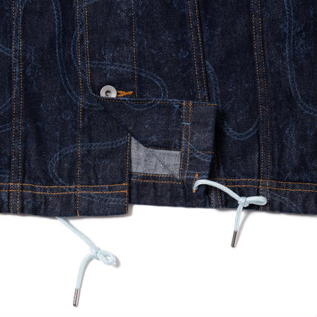 1. Japanese fine 10oz denim on Paisley & Rope pattern by laser processing.